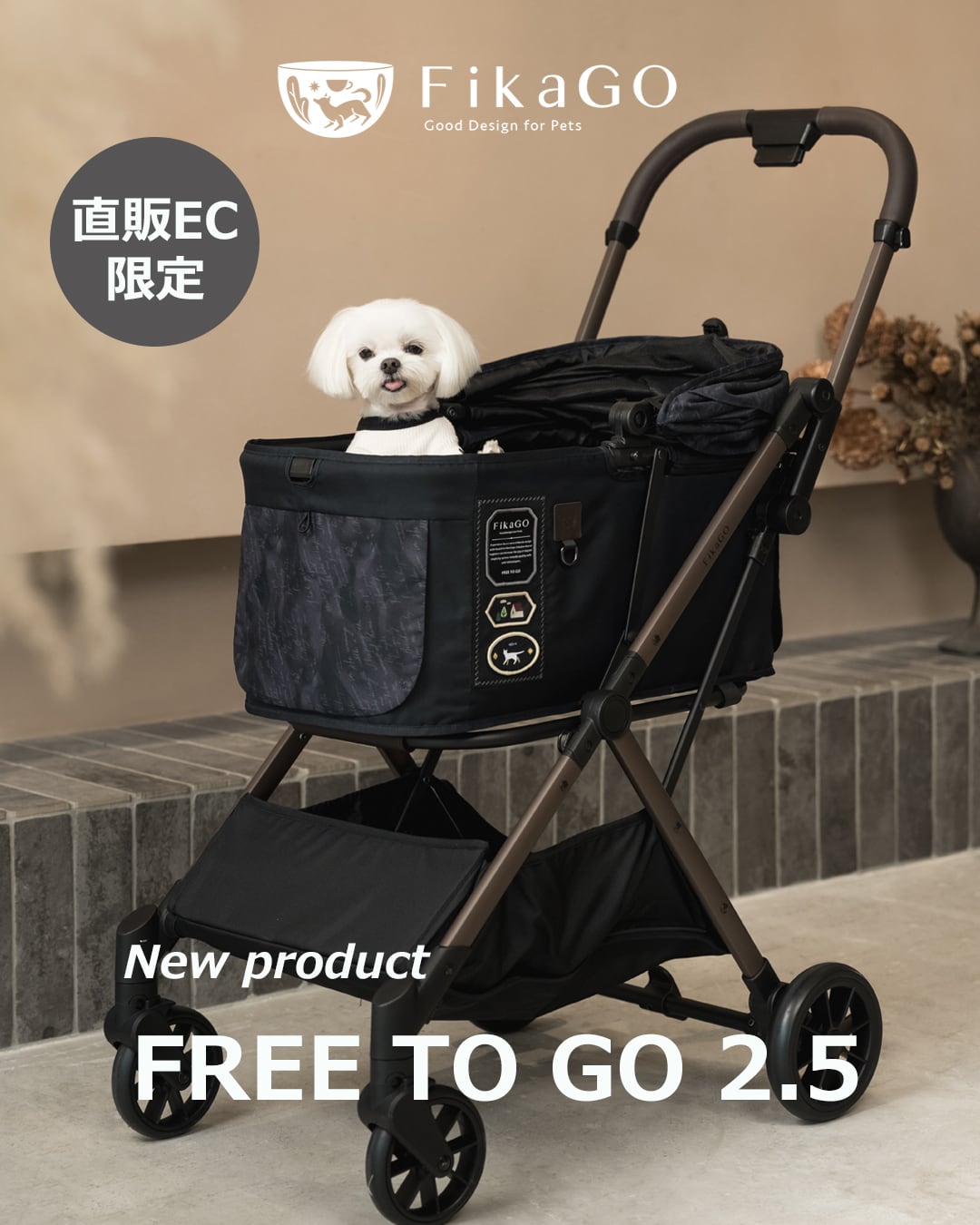 ◇FikaGO FREE TO GO 2◇ 超・コンパクト、自動収納ペットカート 『フリートゥーゴー』がフルモデルチェンジ!! ●サイズ: [使用時]W490×D810×H1020mm [折畳時]W490×D260×H650mm [キャリー内寸(幌を除く内寸)]W320×D570×H260mm ●重量:6.0kg ●耐荷重:20kg(ペット専用) ●荷物カゴ耐荷重:3kg ●対応犬数:2匹(猫も可) ●リードフック1本付属 ●メーカー保証:お買い上げ日より1年間