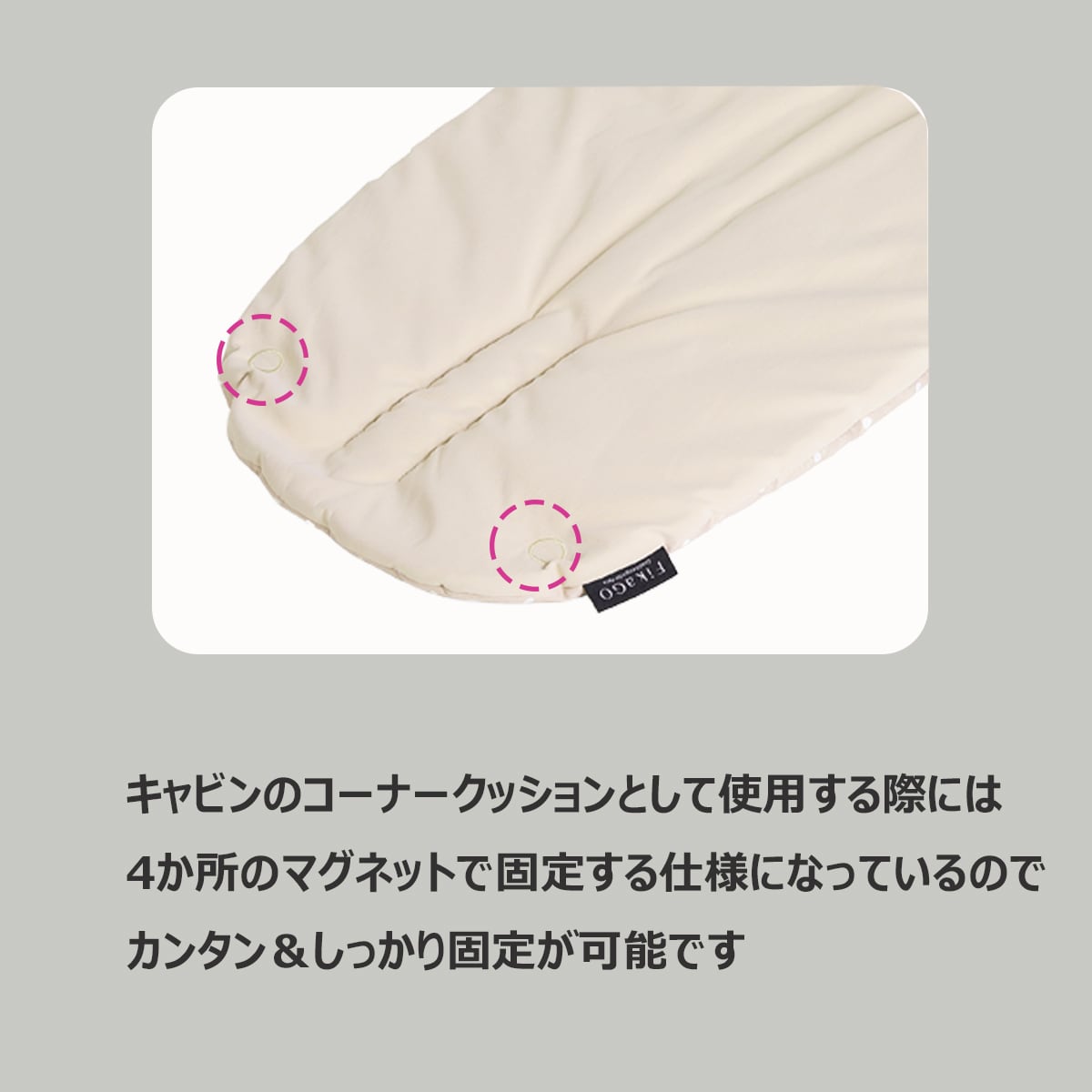 キャビンのコーナークッションとして使用する際には、4カ所のマグネットで固定する仕様になっているので、カンタン&しっかり固定が可能です