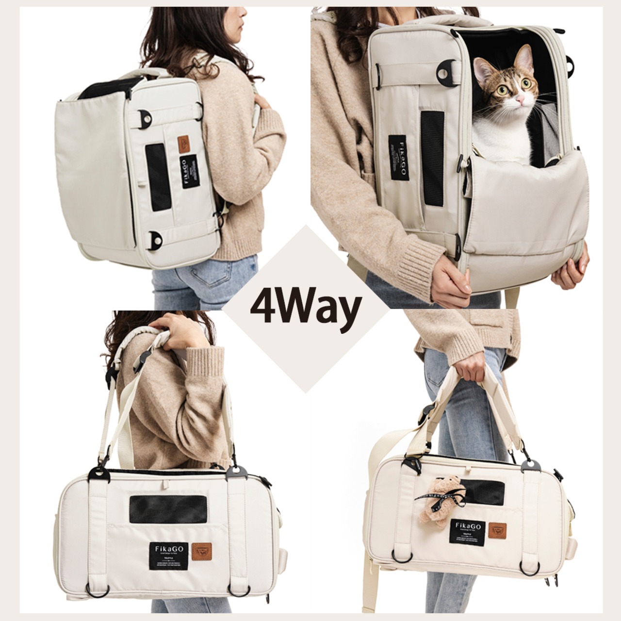 バックパック・前抱きキャリー・肩掛け・手持ちと4通りに対応するキャリーバッグです