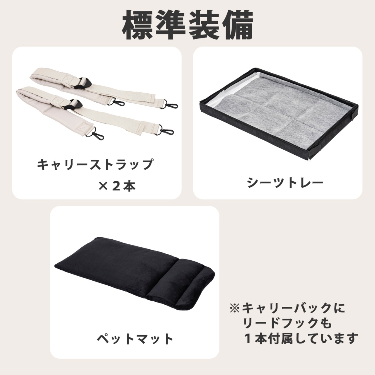 ペットシーツトレーと起毛素材のマットを標準装備